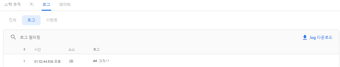 해당 코드를 작성 후 앱 충돌 시 마찬가지로 Console에서 로그를 확인할 수 있습니다.
